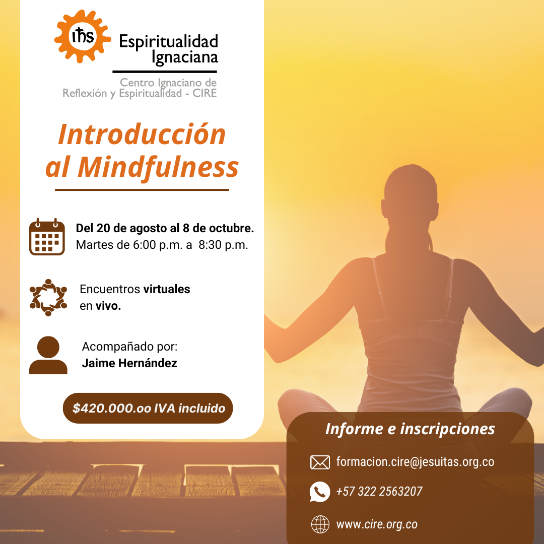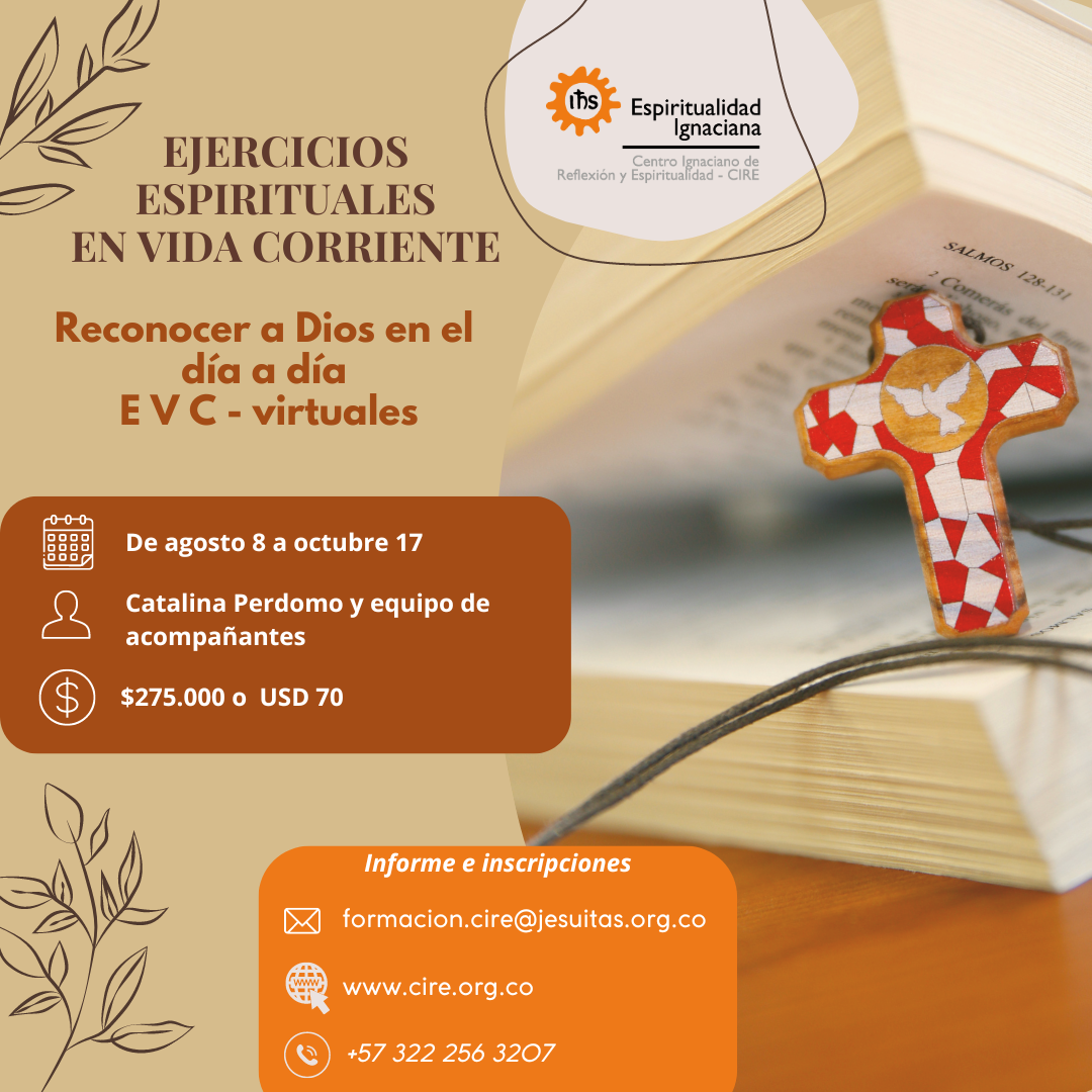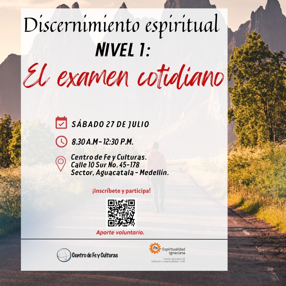El Centro de Fe y Culturas ofrece un espacio de reflexión profunda sobre el discernimiento espiritual, junto con el CIRE - Centro Ignaciano de Reflexión y Espiritualidad. Fecha: 27 de julio Hora: 8:30 a.m. - 12:30 p.m. Lugar: Centro de Fe y Culturas | Medellín Aporte voluntario Link de inscripción