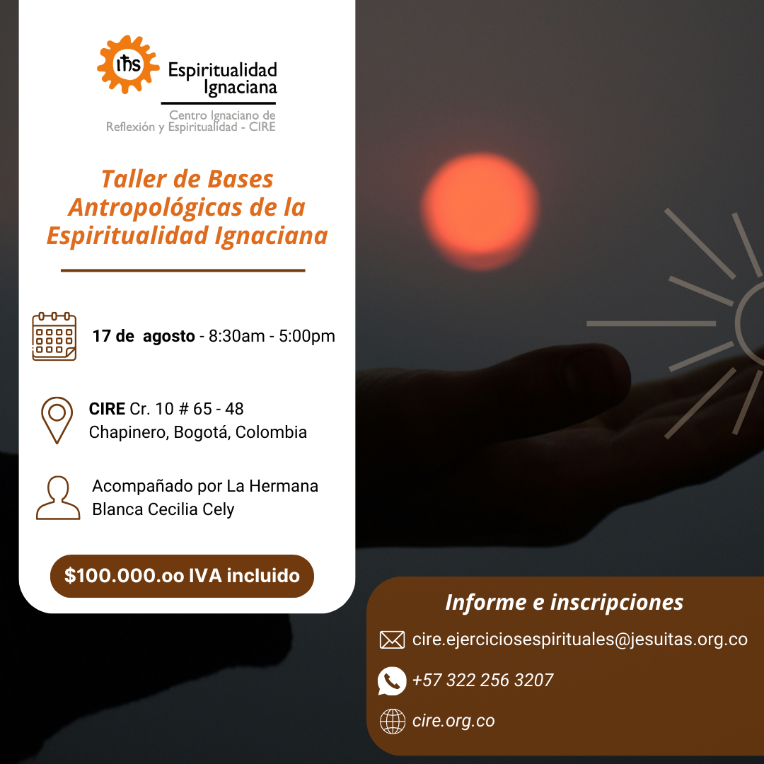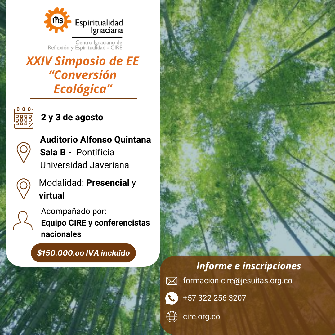 El CIRE invita al XXIV Simposio de EE ❝Conversión Ecológica❞. Los encuentros serán de 8:00 am. a 6:00 pm. Interesados pueden: 1. Inscribirse en esta página 2. Comunicarse al 322 256 32 07 3. Escribir al mail formacion.cire@jesuitas.org.co 4. Visitar las instalaciones del Centro Ignaciano de Reflexión y Espiritualidad CIRE Carrera 10 No. 65 - […]