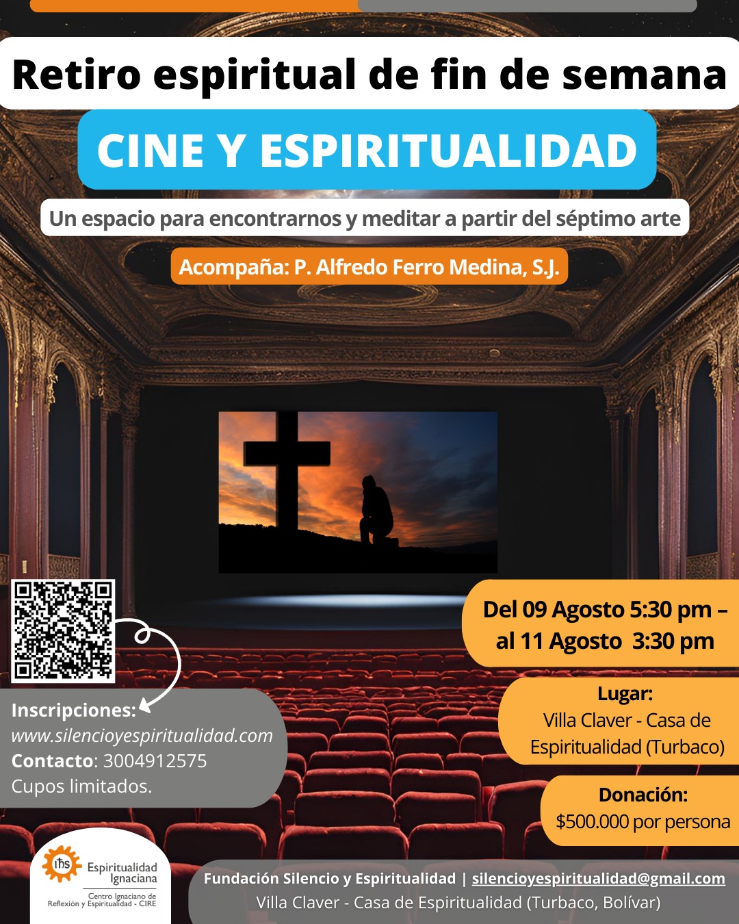 En este retiro de fin de semana nos adentraremos en el autoconocimiento y el encuentro con Dios a partir del cine. Dirige: Alfredo Ferro, SJ. Fecha: del 09 al 11 de agosto Lugar: Villa Claver, Sector Loma de Piedra FCA28, Turbaco, Bolívar, Colombia Donación: $ 500.000 por persona Link de inscripción