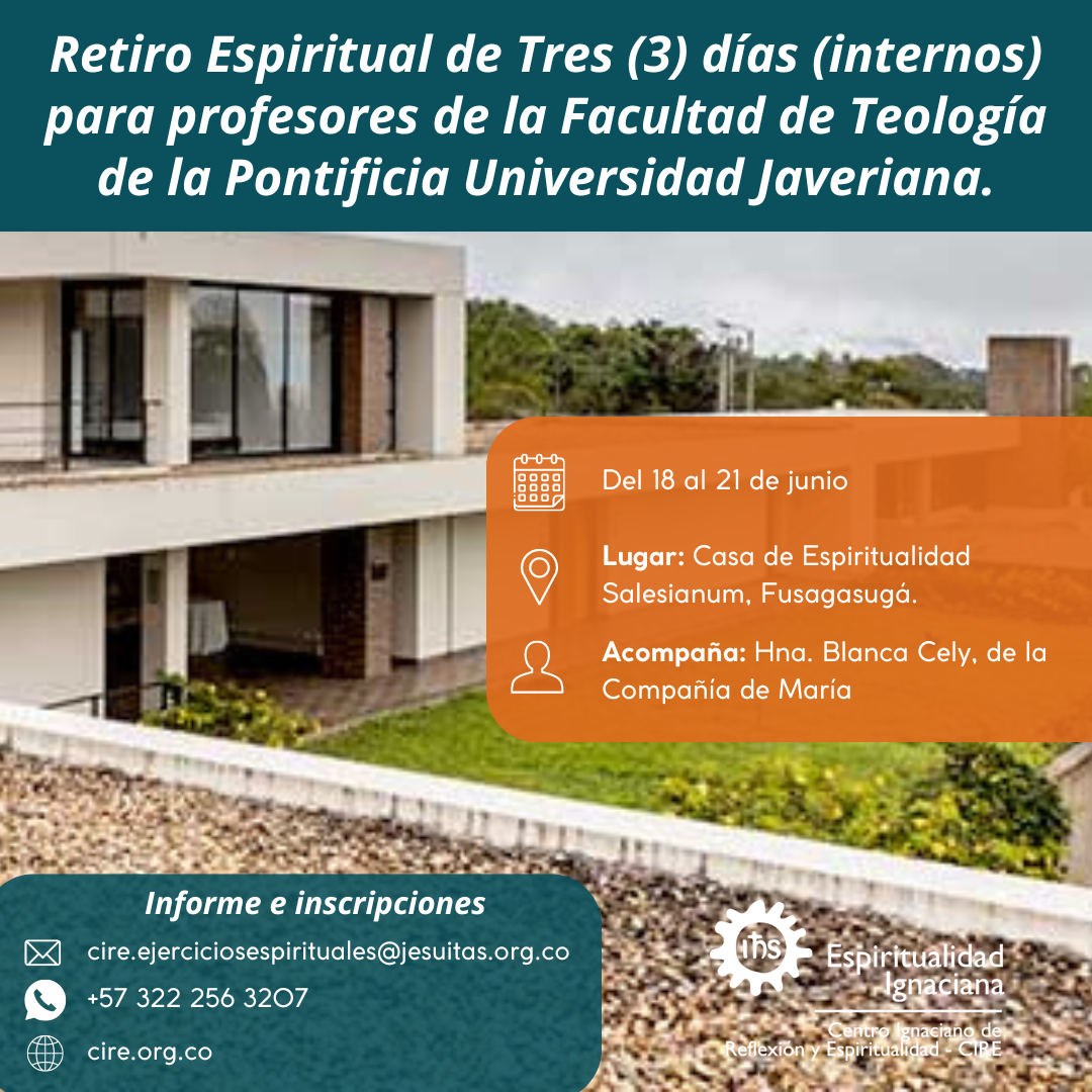 Retiro Espiritual de Tres (3) días (internos) para profesores de la Facultad de Teología de la Pontificia Universidad Javeriana.