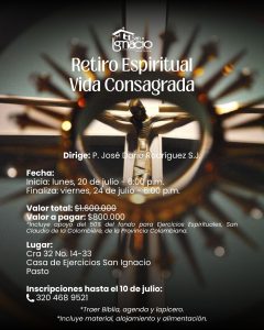 El retiro se realizará en la Casa de Ejercicios San Ignacio de Pasto, un lugar cómodo y tranquilo, rodeado de amplias zonas verdes que favorecen la oración y la contemplación. Está abierto a todas las personas que deseen vivir unos días de recogimiento, oración y renovación interior.
